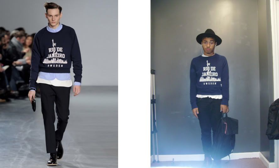 I bought this Acne sweater back in July and haven't stopped wearing it since. I remember seeing it when the men's show came out and instantly falling in love... I thought "Hmmmm. Tourist souvenir!? It's brilliant!" I didn't forget my fear of looking like a tourist but I would do it any day for Acne. I didn't feel complete until it was on my back. I'm complete now.